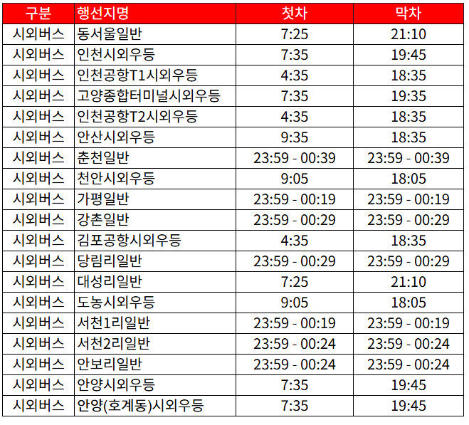 1. 서울행 시외버스 시간표